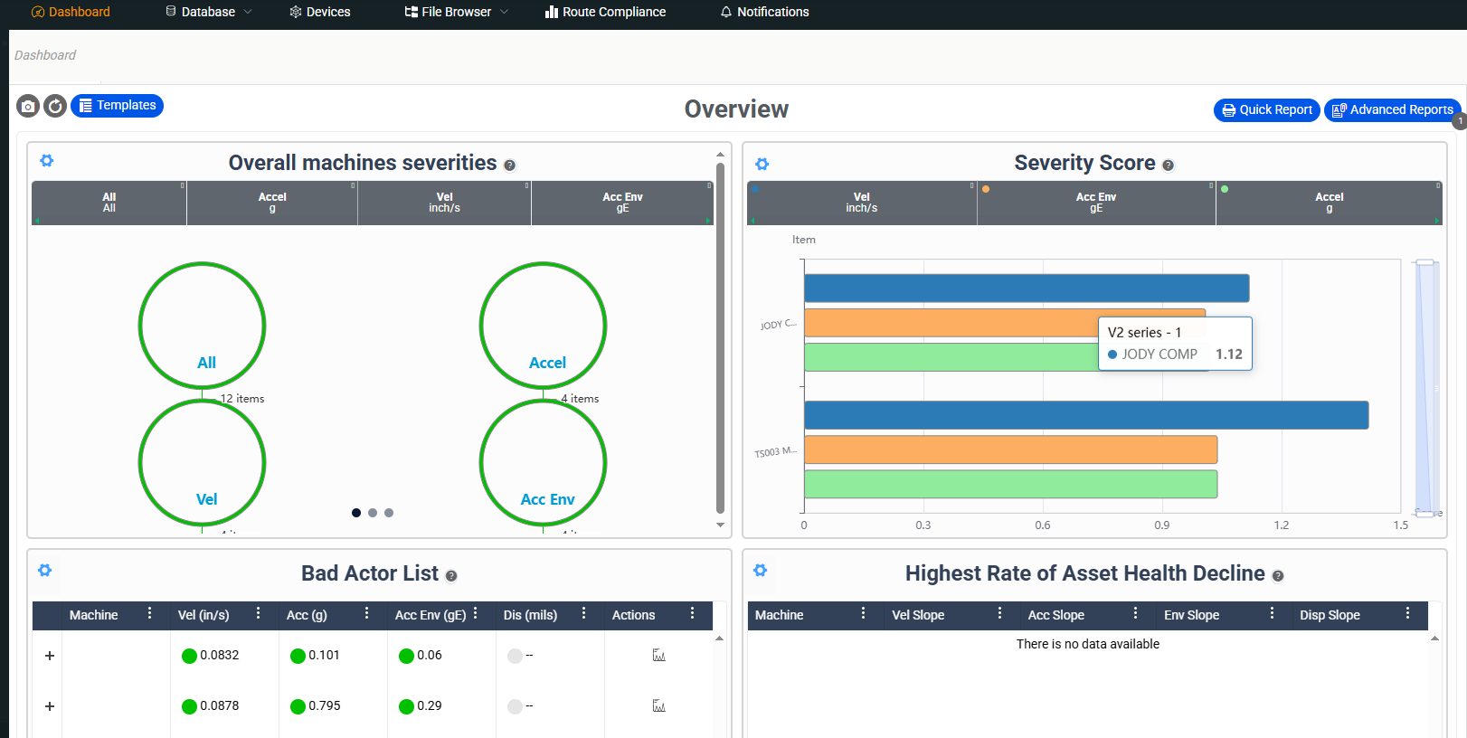 * More frequent monitoring: Provides continuous insights into machine health.As opposed to the single data point collected monthly or quarterly during a route based program.